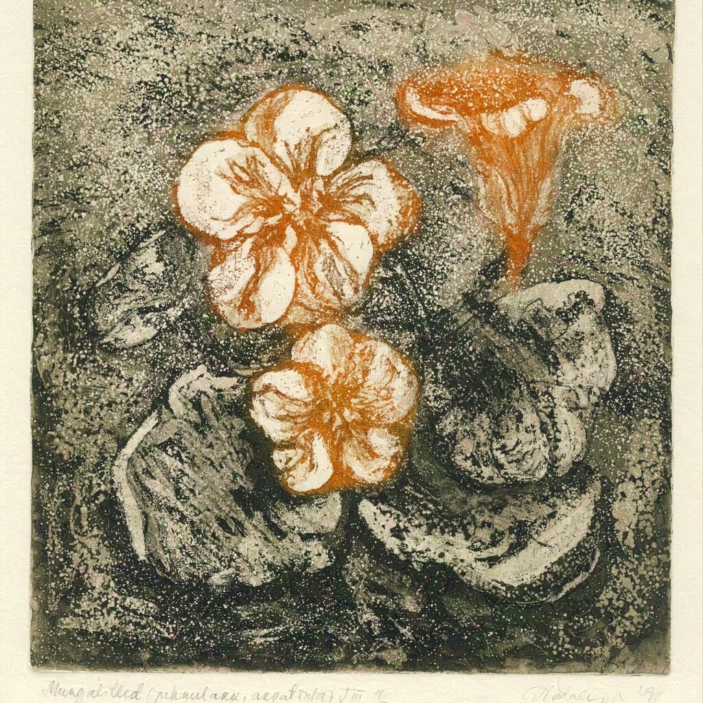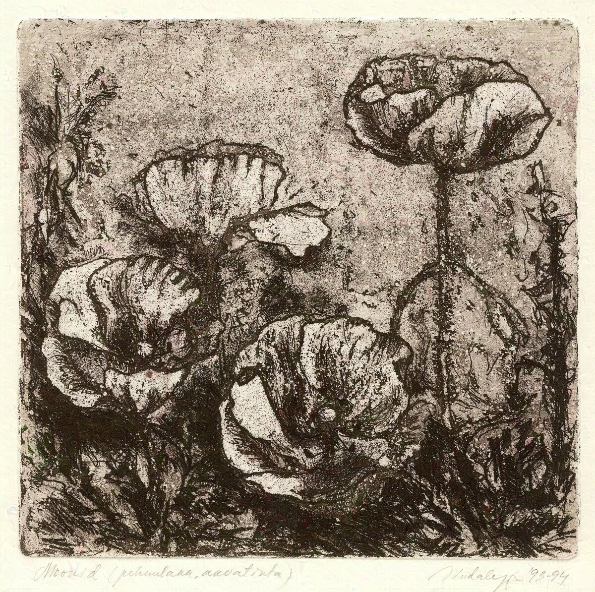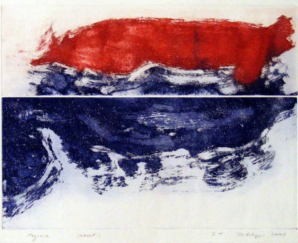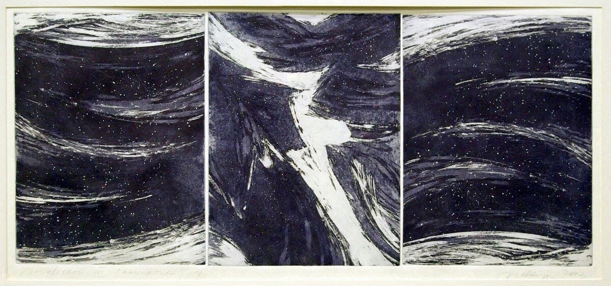 Soome-ugri rahvaste mütoloogiliste kujutelmade valdavalt akvatintatehnikas maalilised interpretatsioonid vahelduvad jaapanipäraste abstraktsioonidega. Kindlas tonaalsuses välja peetud maalilised söövitused võluvad teostesse kätketud arhailise poeesiaga.