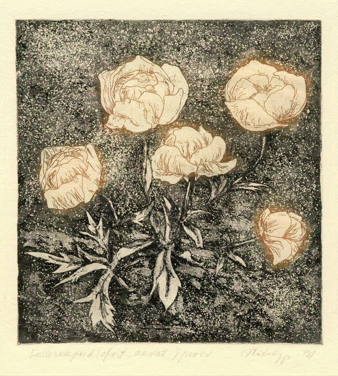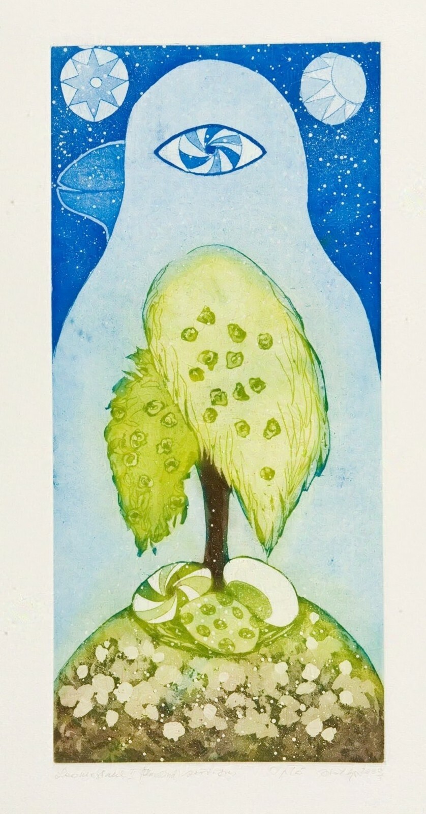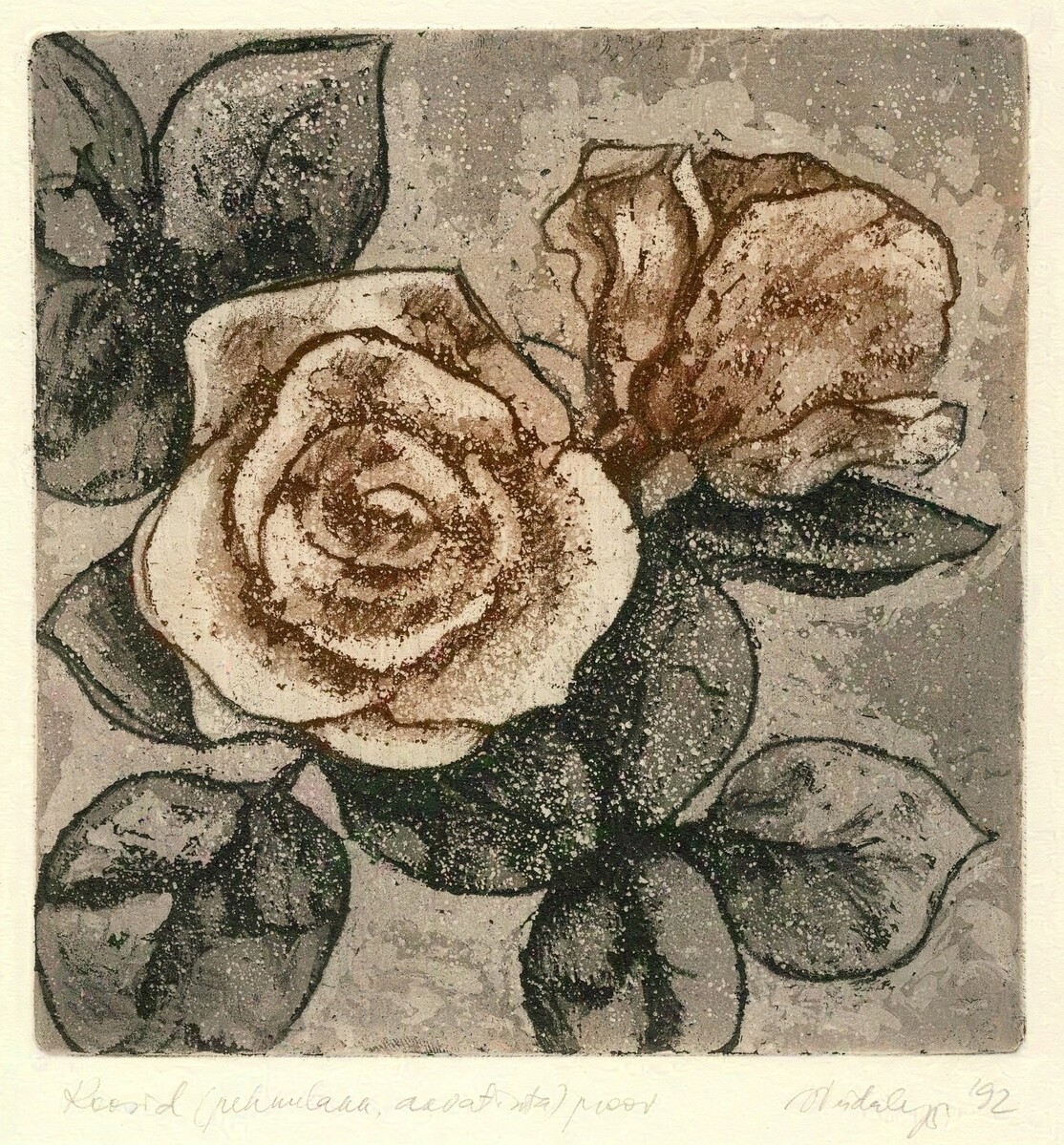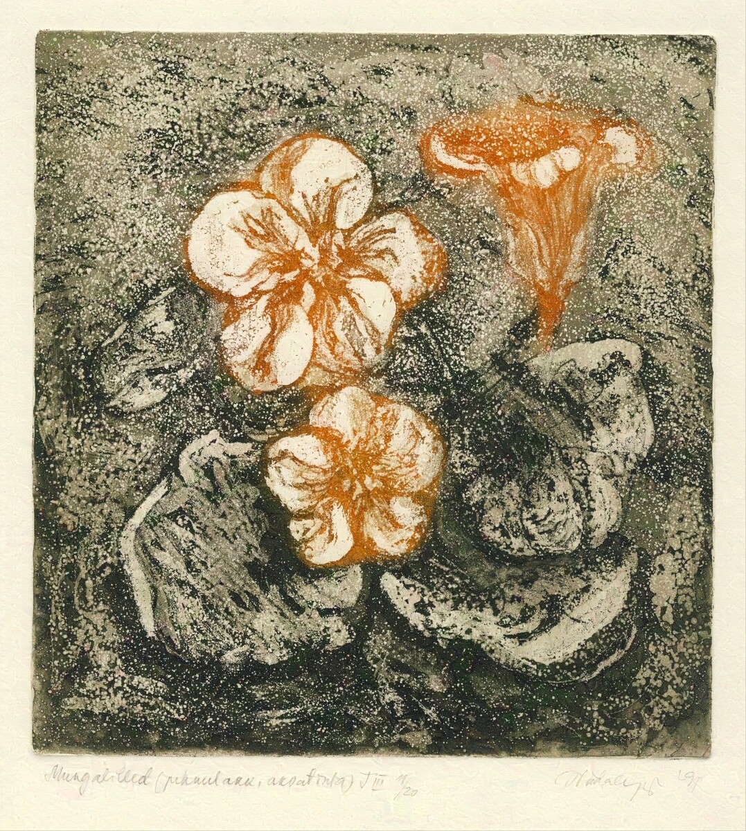 Soome-ugri rahvaste mütoloogiliste kujutelmade valdavalt akvatintatehnikas maalilised interpretatsioonid vahelduvad jaapanipäraste abstraktsioonidega. Kindlas tonaalsuses välja peetud maalilised söövitused võluvad teostesse kätketud arhailise poeesiaga.