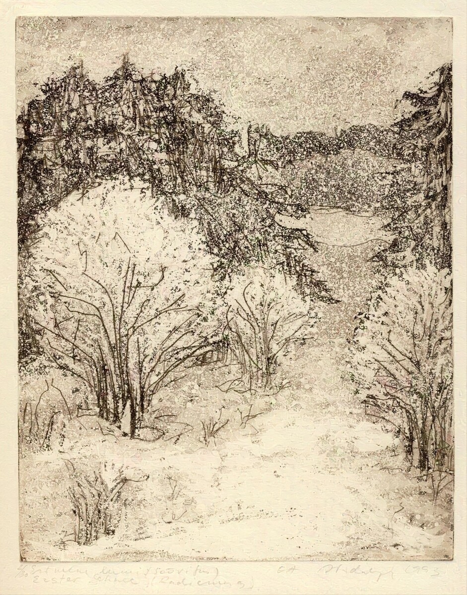 Viimaste eluaastate loomingus avardas ta äkki oma graafika haaret. Maalilised ja kontrastsed kujundid asetuvad kaugusesse, ruumi, muutuvad sümboliteks. Heletumeduse vormides võib aimata looduse visioone, jõgede helendusi, tuule ja õhu hoovusi. Fantaasiarikkad vaatajad avastavad neis müstilist maailmakäsitlust ja erilist salapära.
