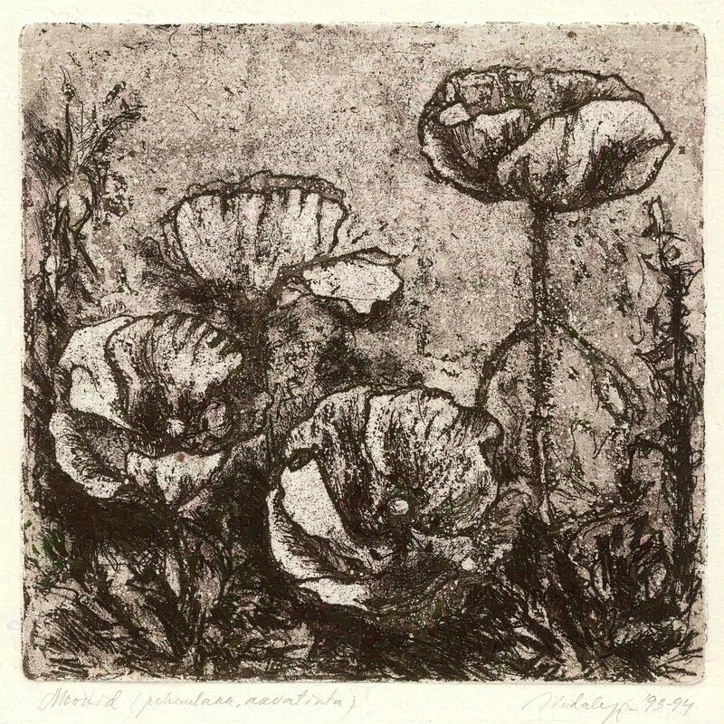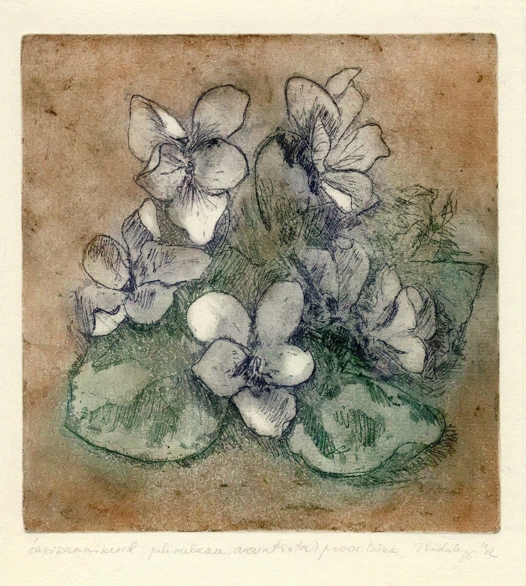 neid vaadeldes, joonistades, joonist plaadile kandes, söövitades, akvatinta pindadega vormides.